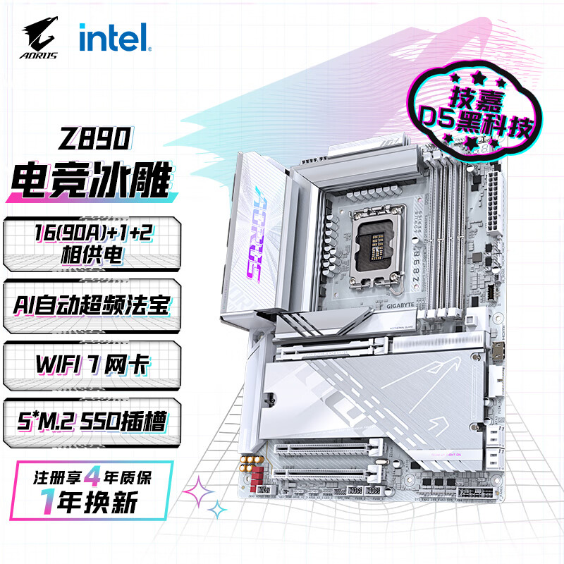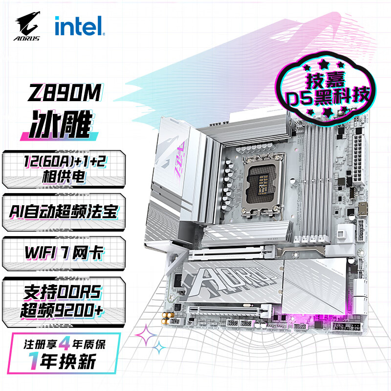 京东技嘉冰雕 Z890M AORUS ELITE WIFI7 ICE DDR5 主板 支持 CPU Ultra U7-265K U5-245K LGA 18511699 元直达链接技嘉 B860M 电竞雕主板