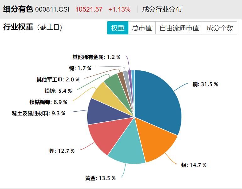 风险提示:基金有风险,投资需谨慎。投资人应当阅读《基金合同》《招募说明书》《产品资料概要》等法律文件,了解基金的风险收益特征,特别是特有风险,并根据自身投资目的、投资经验、资产状况等判断是否和自身风险承受能力相适应。基金管理人承诺以诚实信用、谨慎尽责的原则管理和运用基金资产,但不保证基金一定盈利或本金不受损失。以上基金属于中等风险等级(R3)产品,适合经客户风险承受等级测评后结果为平衡型(C3)及以上的投资者。请投资者关注指数化投资的风险以及集中投资于细分有色指数成分股的持有风险,请关注部分指数成分股权重较大、集中度较高的风险,请关注指数化投资的风险、ETF运作风险、投资特定品种的特有风险等。文中提及个股仅为指数成份股客观展示列举,本文出现信息只作为参考,投资人须对任何自主决定的投资行为负责。本文中的任何观点、分析及预测不构成对阅读者任何形式的投资建议。